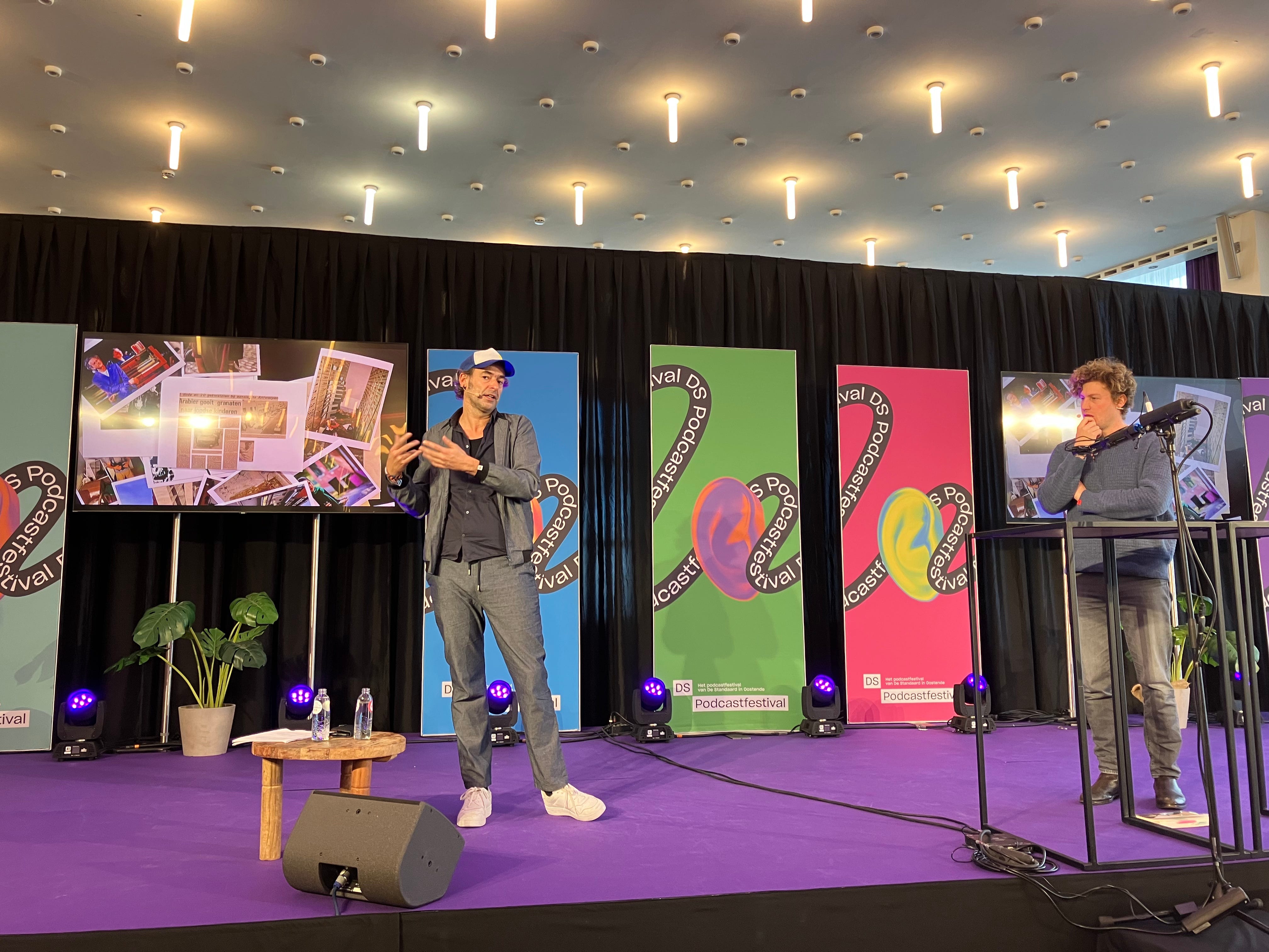 Bart Van Nuffelen en Lucas Derycke hadden een interessant verhaal te vertellen. En theatermakers als ze zijn hadden ze voor de aanwezigen een interessante vorm ter ondersteuning van hun verhaal bedacht. Zo hing er boven de tafel een camera om foto’s en krantenartikelen op de schermen te kunnen tonen. Zodoende kreeg het publiek een beeld bij alle personen en gebeurtenissen van de De Kunst van het Verdwijnen.