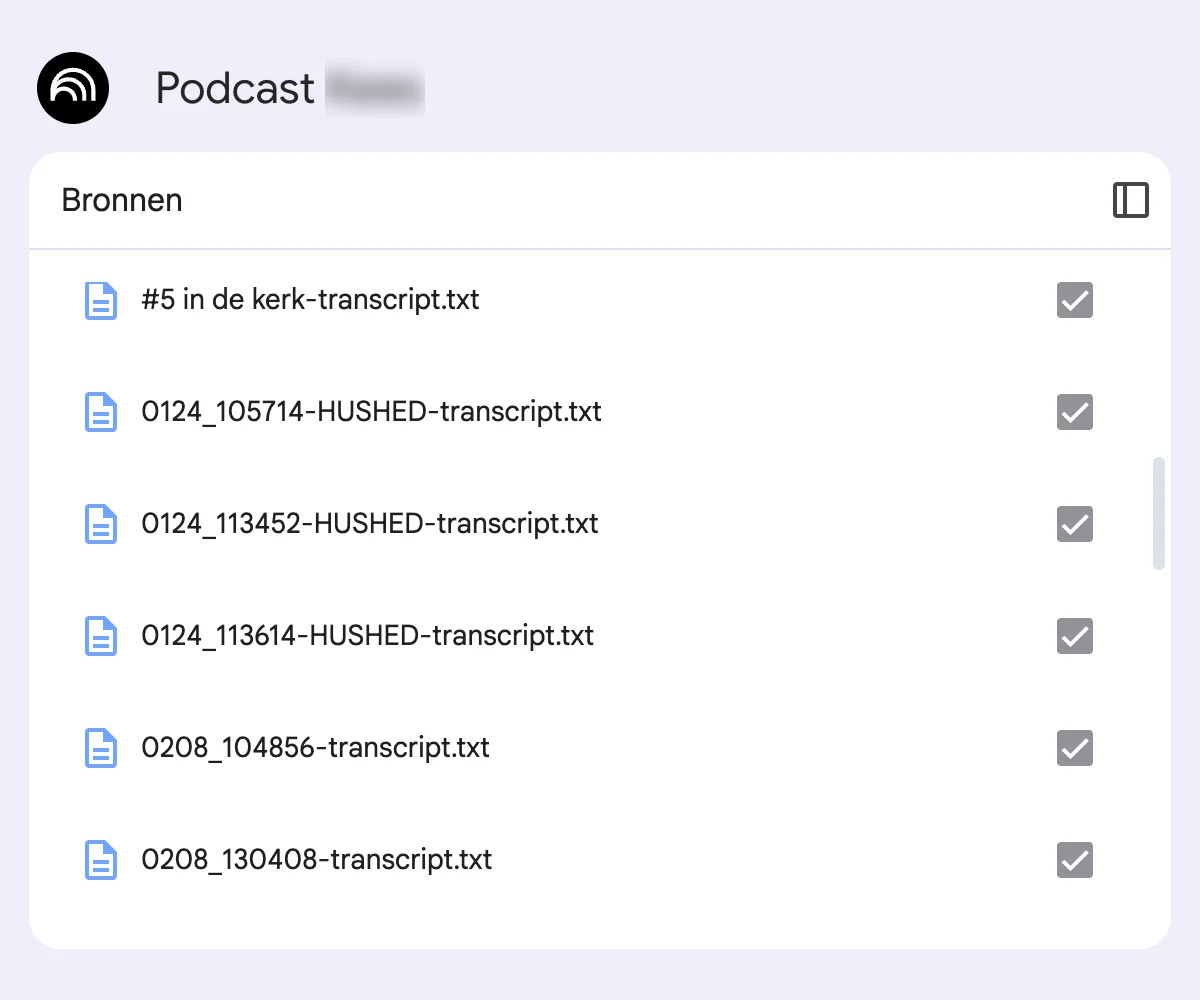 Zo kwam ik op het idee om het te voeren met een hele zooi transcripts van een podcast waar ik bij betrokken ben. De transcripts heb ik gemaakt door de audio door de AI-transcriptietool MacWhisper te slingeren.